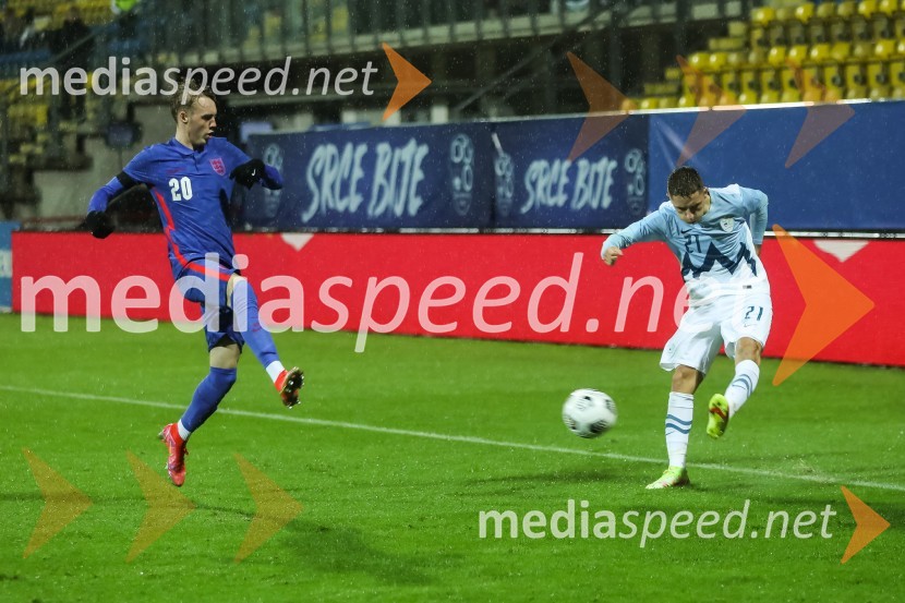 Slovenski nogometaši so že v zgodnjem delu tekme v mestu grofov morali dvakrat pobirati žogo iz svoje mreže. Prvič že v peti minuti, ko je po podaji Rhiana Brewsterja v polno zadel Conor Gallagher, drugič pa v 14. minuti, ko je po asistenci Luka Thomasa domačega vratarja Martina Turka ukanil še Cole Palmer.