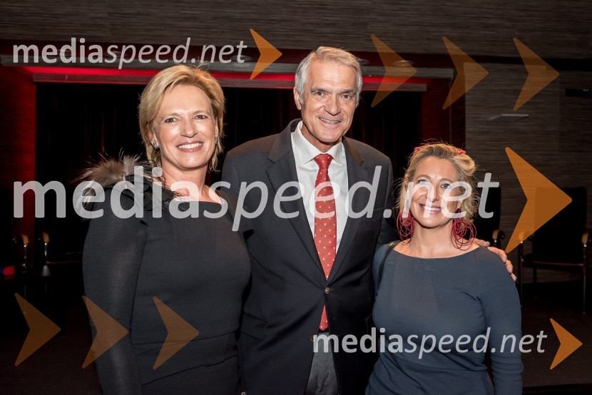 Aleša Mižigoj, direktorica Medex, d. o. o.; Slobodan Sibinčič , generalni sekretar Evropskega združenja poslovnih medijev, predsednik sveta Managerskih koncertov, Švedski generalni častni konzul; Maria Anselmi, direktorica Bisnode 100 najbogatejših Slovencev pred objektivom Mediaspeed