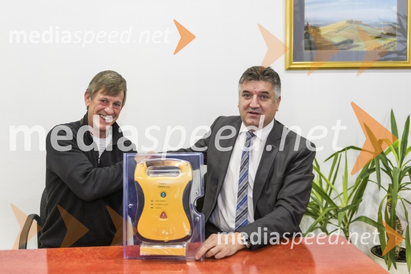 Danilo Kacijan, župan občine Cankova; Sandi Štefan Flisar, direktor območne enote Zavarovalnica Triglav Murska Sobota Zavarovalnica Triglav predala defibrilator občini Cankova