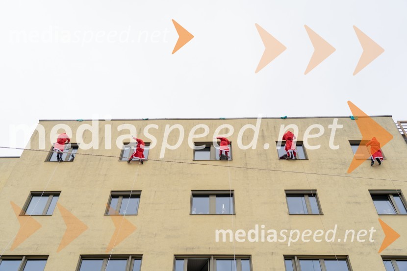 Spust božičkov iz vrha Klinike za prediatrijo Maribor
