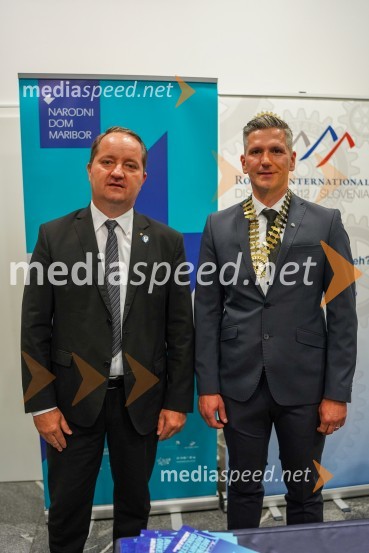 Bojan Vrhovšek, asistent guvernerja v D 1912 Slovenija in Severna Makedonija; Matej Kolenc, predsednik, Rotary Maribor Dobrodelni koncert mednarodnega rotarijskega orkestra ob 30-letnici Rotary kluba Maribor
