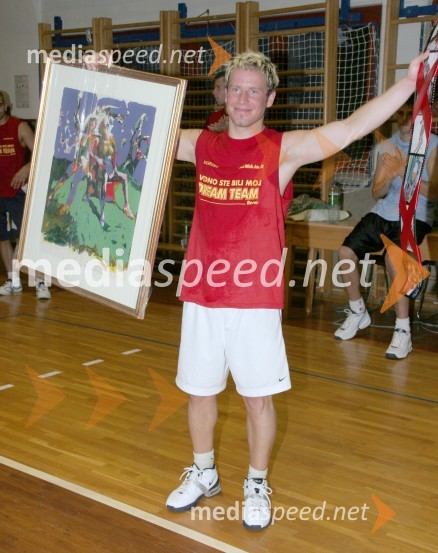 Smučarski reprezentant Rene Mlekuž se je v domači Slovenski Bistrici s košarkarsko tekmo v krogu svojih športnih prijateljev poslovil od tekmovalne kariere.