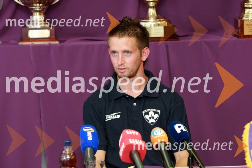 Janez Aljančič, nogometaš NK MariborNovinarska konferenca NK Maribor pred povratno tekmo drugega kroga kvalifikacij za ligo prvakov Maribor – WIT in predstavitev tretjega novinca v vijoličastem Janeza Aljančiča