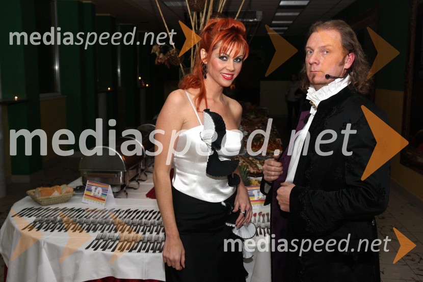 Stančka Šukalo Šeško, manekenka in voditeljica oddaje ter Milan Slavič, lastnik Royal Society ClubaTV Pika, snemanje novoletne oddaje