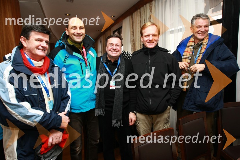 Mag. Blaž Kavčič, predsednik Državnega sveta RS, Matjaž Kovačič, predsednik uprave Nove KBM, Zoran Janković, župan Ljubljane, Marko Jazbec, član uprave NLB in Marko Voljč, nekdanji predsednik uprave NLB 46. Zlata lisica, druženje na Snežnem stadionu in VIP šotoru