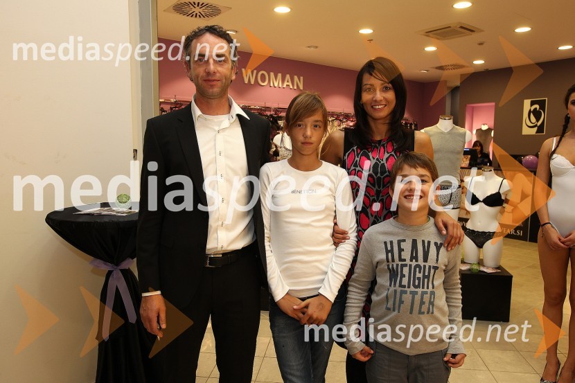 Mitja Zrim, Klavdija Grkman Zrim, predstavnika B-Underwear Slovenija, hčerka Nina in sin MaticOtvoritev trgovine B-Underwear, Mercator Center Šiška