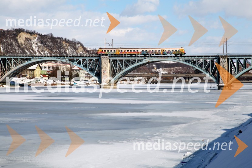 Reka Drava, MariborZasnežena in poledenela reka Drava v Mariboru