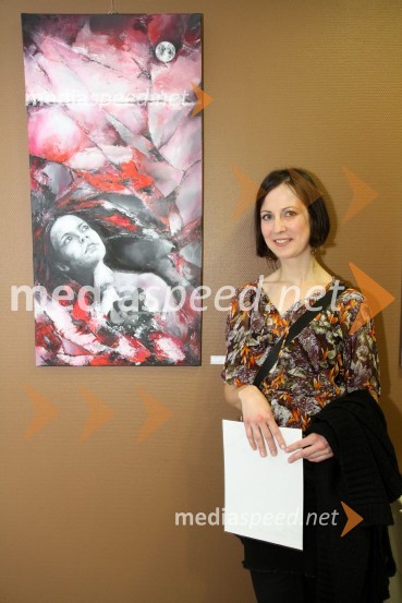 Nina Meglič, zmagovalka natečaja za portret medijske osebnosti s portretom pevke Severe Gjurin Slovenski svet ustvarjalnosti, otvoritev razstave portretov znanih Slovencev
