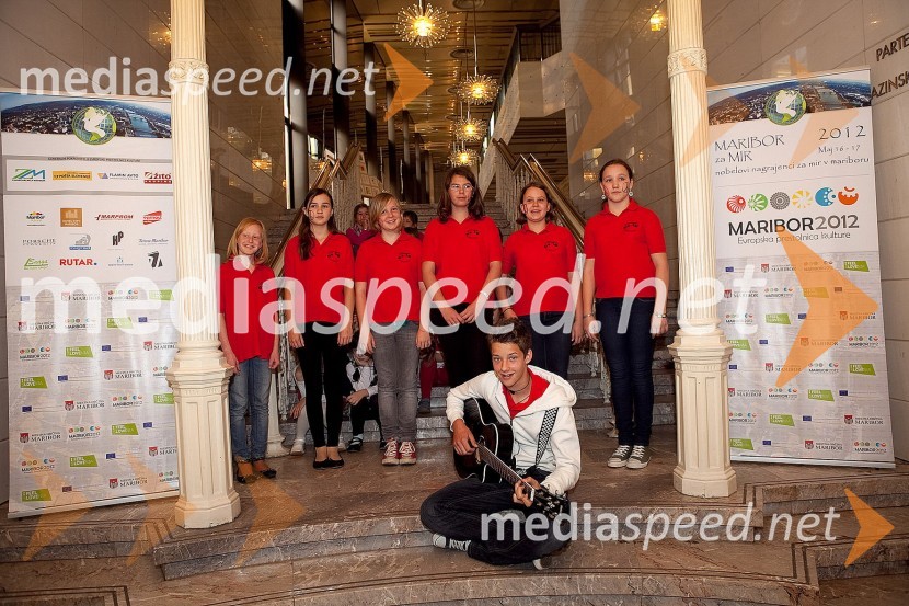 Center za državljansko vzgojo, nevladni in neprofitni izobraževalni zavod, je v okviru srečanja Nobelovih nagrajencev za mir, v sodelovanju s priznano galerijo iz New Yorka CITYarts, pripravil razstavo znamenite potujoče svetovne razstave »Koščki za mir« / »Pieces for Peace«.Projekt, ki uživa mednarodni sloves predvsem zaradi svoje preprostosti, inovativnosti in kvalitete, je nastal v ZDA po tragičnem 11. septembru, njegov cilj pa je, da skozi umetniško ustvarjanje poveže mlade vsega sveta ter s tem promovira človeške vrednote in mir v svetu. Otroci vsega sveta, tudi slovenski, so bili v okviru projekta nagovorjeni, da skozi umetniško ustvarjanje odgovorijo na vprašanje »Kako si predstavljam mir?«. Njihovi izdelki so postali del 300-tih »koščkov« velike sestavljanke - izbranih umetniških del otrok iz 65-tih držav sveta, ki sestavljajo potujočo razstavo.