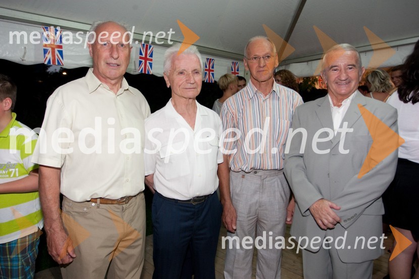 Janez Brodnik, nekdanji olimpijec, Janez, soproga Milica Rožman, nekdanja olimpijka, Miro Cerar, nekdanji gimnastičar in predsednik Olimpijske akademije ter ambasador za fair play in Tine Šrot, nedkanji olimpijec Sprejem britanskega veleposlanika ob otvoritvi Olimpijskih iger v Londonu