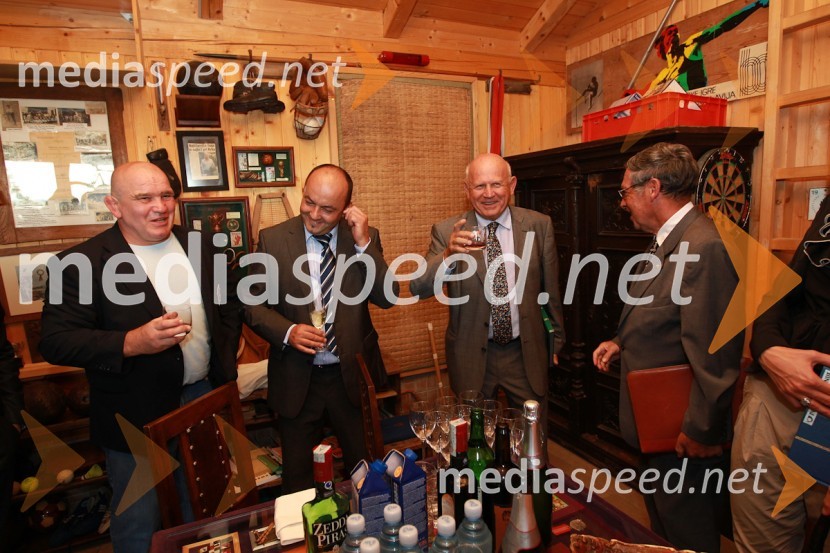 Marjan Fabjan, trener, Rudi Matjašič, član nadzornega sveta Pošte Slovenije, Janez Kocijančič, predsednik Olimpijskega komiteja Slovenije Pošta Slovenije, promocija priložnostne znamke Urške Žolnir