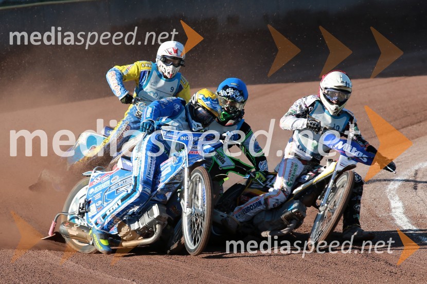Ladislav Vida, ST Lendava; Matej Žagar, speedwayist (Slovenija); Žiga Kovačič, AMD Krško; Patrik Buri, (Slovaška) Speedway, padec Žagarja in Kovačiča na finalu DP