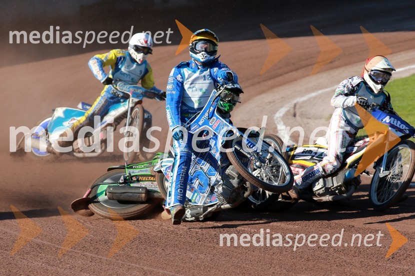 Ladislav Vida, ST Lendava; Matej Žagar, speedwayist (Slovenija); Žiga Kovačič, AMD Krško; Patrik Buri, (Slovaška) Speedway, padec Žagarja in Kovačiča na finalu DP