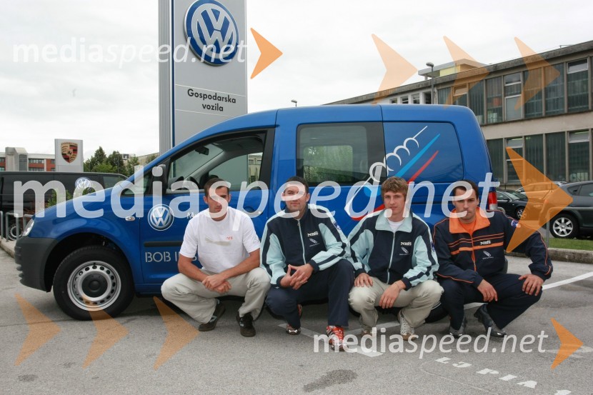 Damjan Zlatnar, Matjaž Lazar, Anže Šetina in David UrankarPredaja vozil VW Transporter in Caddy Bob Zvezi Slovenije