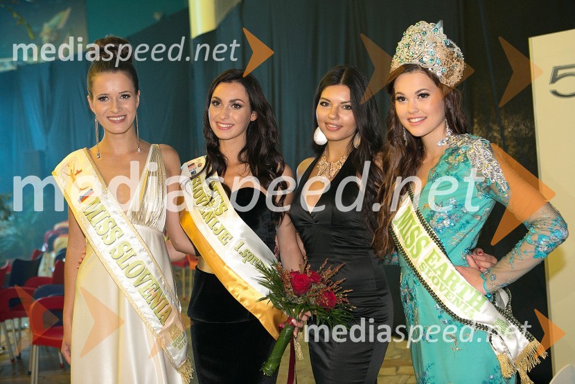 Julija Bizjak, Miss Slovenije 2014, model Atlantisa in miss osebnost; Patricia Koželj, 1. spremljevalka, Miss Slovenije 2015; ... ; Laura Škvorc, Miss Earth 2015Miss Slovenije 2015 je Mateja Kociper