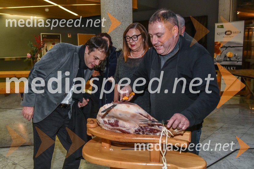 Matej Arčon, župan, Občina Nova Gorica; Maja Jerman Bratec, direktorica SNG Nova Gorica; ... Koncertna mora, premiera predstave