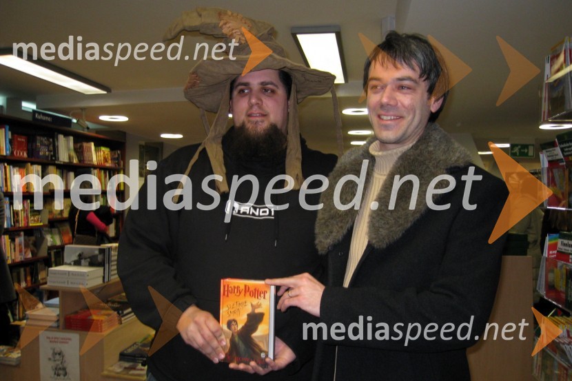 Boštjan Gorenc, urednik spletne strani harryjezakon.com in Jakob J. Kenda, prevajalec sedme knjige Harry Potter Svetinje smrtiSedma knjiga o Harryju Potterju končno v slovenščini