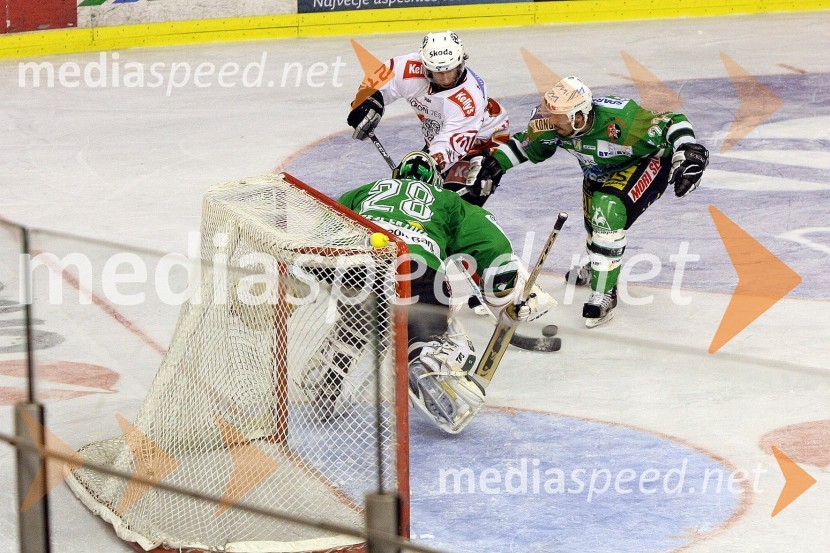 Jeseničani so povedli že po dobri minuti igre, ko je ljubljanskega vratarja Klemna Mohoriča z modre črte presenetil Jurij Goličič, nato pa je, prav tako v prvi tretjini, v 14. minuti, Paul Healey plošček spretno preusmeril v gol po strelu Aleša Kranjca.