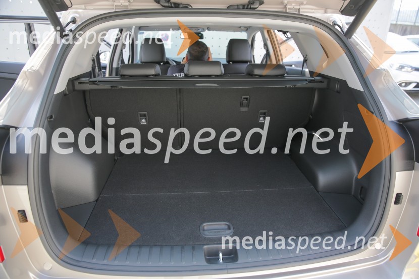 Prtljažnik novega Tucsona ne navduši le s 513 litri prostornine, temveč tudi s svojo prilagodljivostjo. Naslonjali sedežne klopi je namreč mogoče v zgolj nekaj sekundah zložiti v razmerju 60:40. Ko so zloženi vsi sedeži, volumen prtljažnega prostora znaša kar 1.503 litre. Naslonjali zadnje klopi pa potnike razvajata tudi z možnostjo nastavitve po naklonu.