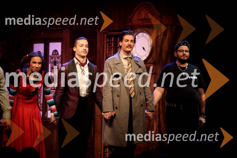 Večkrat nagrajena komedija avtorjev Henryja Lewisa, Jonathana Sayerja in Henryja Shieldsa z izvirnim naslovom The Play That Goes Wrong je lani prejela prestižno nagrado tony za najboljši scenski dizajn, dve leti prej pa tudi nagrado Laurence Olivier za najboljšo novo komedijo leta 2015.