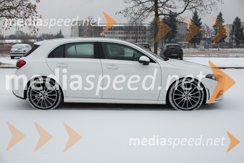 Mercedes-Benz razreda A je najmanjši avto pri znamki in tudi z najbolj burno zgodovino. Ampak kdo še razglablja o težavah A-ja izpred dobrih dvajset let, če pa je zdaj tukaj nov vrhunski izdelek z dinamičnim zunanjim videzom in avantgardno notranjostjo. Novi A Mercedes je sedaj naredil občutnejši korak naprej v kompaktnem razredu in hkrati še bolj opravičuje premijsko uvrščanje. V novem testnem terminu smo preizkusili povsem nov Mercedes-Benz razreda A z oznako 200 AMG Line. Prej kot začnemo o številkah je potrebno pohvaliti zunanjo podobo našega preizkušanca. Silhueta je dokaj klasična v tem kompaktnem razredu kot jo srečujemo pri VW Golfu, Fordu Focusu in ostalih. Pa se vseeno razlikuje od njih. Detajli in prepoznavne linije znamke ga ločujejo iz množice ter mu dajejo kot skupek zelo mladostno dinamično prikazen. Še bolj pa nas je navdušila njegova notranjost kot delovno okolje voznika. Kokpit je povzet iz njihovih večjih modelov. Pred voznikom in do sredine notranjosti se razteza dvojni široki zaslon. Prvi predvsem prikazuje digitalne merilnike in osnovne informacije vozila, drugi pa vse ostalo glede nastavitev vozila ter povezljiv infotainment sistem. Voznik lahko z ekrani upravlja neposredno zaradi občutljivosti na dotik in tudi preko sledilne plošče na sredinski konzoli tam kjer se drugače namesti klasična menjalna ročica. Tretja možnost pa je tudi glasovno upravljanje, ki pa je še glede jemanja pozornosti med vožnjo najvarnejša odločitev. Le vaša izgovorjava v angleščini ali nemščini naj bo razločna. Notranjost je dodatno popestrena z ambientalno osvetlitvijo pri čemer izstopajo okrogle ventilacijske šobe na kokpitu pod zaslonom, ki so prav tako postale Mercedesov prepoznavni znak notranjosti. Prostornost v razredu A ni ravno naravnana v presežke. Prtljažnik je povprečne velikosti izmerjen na 370 litrov brez, da bi podirali zadnjo klop. Sprednja sedeža sta bila v testnem modelu na račun AMG Line opreme dodatno športno oprijemajoča in ponujata dovolj prostora ne glede na velikost voznika in sopotnika, zadaj pa višje raslim ni ravno izrečena dobrodošlica. Testni model kot smo omenili je imel oznako A 200. To v tem primeru pomeni, da ga je poganjal turbobencinski motor in to ne dva litrski kot bi mogoče predvidevali iz oznake ampak precej živahen štirivaljnik s prostornino 1.332 kubičnih centimetrov iz katerega so s pomočjo turbine iztisnili 120 kW ali 161 konjskih moči. Zadostna količina navora omogoča, da je pri pospeševanjih odločen in tudi vezno brez oklevanja pospešuje v konkretne hitrosti daleč od omejitev. Samodejni menjalnik je z motorjem sinhroniziran in se od prve pa do sedme stopnje vezno izmenjuje. Na cesti je suveren z odlično lego v ovinkih. Pravi užitek je kako A zagrize z nosom v oster ovinek in ne dopušča podkrmarjenja dokler se voznik ne skrega s fiziko seveda. Je pa eden tistih avtomobilov, ki mu lahko zaupaš do visoke stopnje zmogljivosti. Glede cene ni kaj dosti za razglabljati. Sam uvoznikov maloprodajni cenik obljublja vstopni A za dobrih 25 tisočakov. Mi so preizkušali zmogljiv turbobencinar z veliko dodatne opreme pri že vključenem AMG Line paketu, kar je ceno vstopnega modela podvojilo. Verjamemo, da sta si vstopni in testi enaka samo po obliki ampak vseeno je 50 tisočakov za večino smrtnikov preveč za kompaktni razred. Plusi:- izgled- voznost in lega- notranji dizajn- kakovostni materiali in izdelava- odziven motor Minus:- visoka končna cena z dodatno opremo Tehnični podatki:Model: Mercedes-Benz A 200 AMG LineMotor: turbobencinskiValjev/ventilov: 4/16Prostornina (ccm): 1.332Moč (kW/KM/min): 120/161/5.500Navor (Nm/min): 250/1.620Pogon: spredajMenjalnik: 7-stopenjski samodejniDimenzije (dolžin/širina/višina mm): 4.419/1.796/1.440Medosna razdalja (mm): 2.729Teža praznega vozila (kg): 1.300Prtljažni prostor (l): 370-1.210Posoda za gorivo (l): 43Povprečna poraba – tovarna (l/100 km): 5,2Povprečna poraba na testu (l/100 km): 6,3Emisije: (CO2 g/km): 120Pospešek (0-100 km/h v s): 8,0Najvišja hitrost (km/h): 225Cena vstopnega modela: 25.390 €Cena testnega modela: 50.752 €Uvoznik: Autocommerce d.o.o.Baragova ulica 5, 1000 Ljubljana