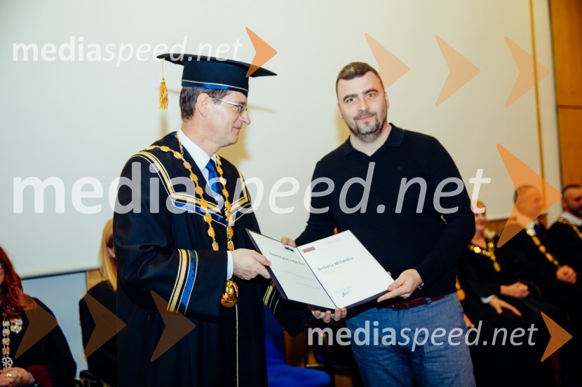 prof. dr. Zdravko Kačič, rektor Univerze v Mariboru; Anže Mihelič, Fakulteta za varnostne vede, Univerza v Mariboru Ob Rektorjevem dnevu podelili priznanja in nagrade Univerze v Mariboru