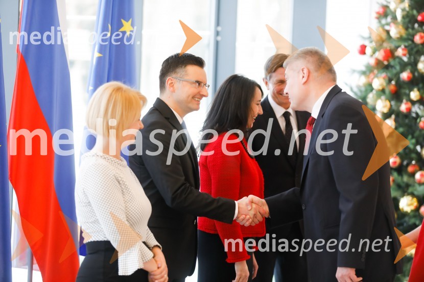 Predsednik Vlade Republike Slovenije Marjan Šarec in gospa Barbara Iskra Šarec sta skupaj s predsednikom Republike Slovenije Borutom Pahorjem in gospo Tanja Pečar na Brdu pri Kranju gostila sprejem za diplomatski zbor ob začetku novega leta. Predsednik vlade je v svojem nagovoru izrazil zadovoljstvo, da se lahko sreča z veleposlaniki v Republiki Sloveniji s pričakovanji, da se bodo odnosi z državami, ki jih veleposlaniki predstavljajo in zastopajo, še naprej uspešno krepili na vseh področjih. Slovenska zunanja politika še vedno ostaja v znanih okvirih svojih dosedanjih strateških zunanjepolitičnih usmeritev, pri tem pa je premier poudaril, da mednarodni položaj Slovenije in tudi njeno zunanjepolitično naravnanost opredeljujeta zlasti članstvo v EU ter NATO. To določa tudi prednostne naloge našega zunanjepolitičnega delovanja. »Pri tem se seveda zavedamo pomena širšega mednarodnega okolja, kjer se bomo izzivov lotevali z bolj proaktivno zunanjo politiko, tudi z iskanjem priložnostnih zavezništev.« »V Sloveniji verjamemo v prihodnost Evropske unije in storili bomo vse, da postane še močnejša, trdnejša in učinkovitejša. Ko gre za Slovenijo, je pomembna ugotovitev, da v slovenski politiki in širši javnosti obstaja visoka podpora takšni Evropski uniji. V tej smeri bomo še posebej delovali v okviru priprav na predsedovanje Slovenije Svetu EU in pri njegovi izvedbi v drugi polovici leta 2021.« Spomnil je tudi na prihajajoče evropske volitve, ki bodo v marsičem opredelile novo politično podobo EU, in izrazil željo, da je to podoba liberalne, v svet odprte Evropske unije. »Skrb za varnost in blaginjo držav v neposredni soseščini mora biti odraz načela soodgovornosti in solidarnosti kakor tudi načela subsidiarnosti kot enega od temeljev sodobne mednarodne ureditve. Zapiranje znotraj lastnih meja, bodisi državnih ali regionalnih, ni prava rešitev. Suverenizem kot vse bolj razširjena politična ideja rastočega populizma v Evropi in svetu ni pravi odgovor na probleme, s katerimi se soočamo,« je še zaključil misli predsednik vlade. Rešitve vidi v skupnem trudu za obravnavanje svetovnih izzivov in groženj v okviru skupnih multilateralnih institucij. Diplomatski zbor sta na srečanju nagovorila tudi predsednik republike Borut Pahor in njegova ekscelenca veleposlanik Suverenega malteškega viteškega reda v Republiki Sloveniji Mariano Hugo knez Windisch–Graetz.
