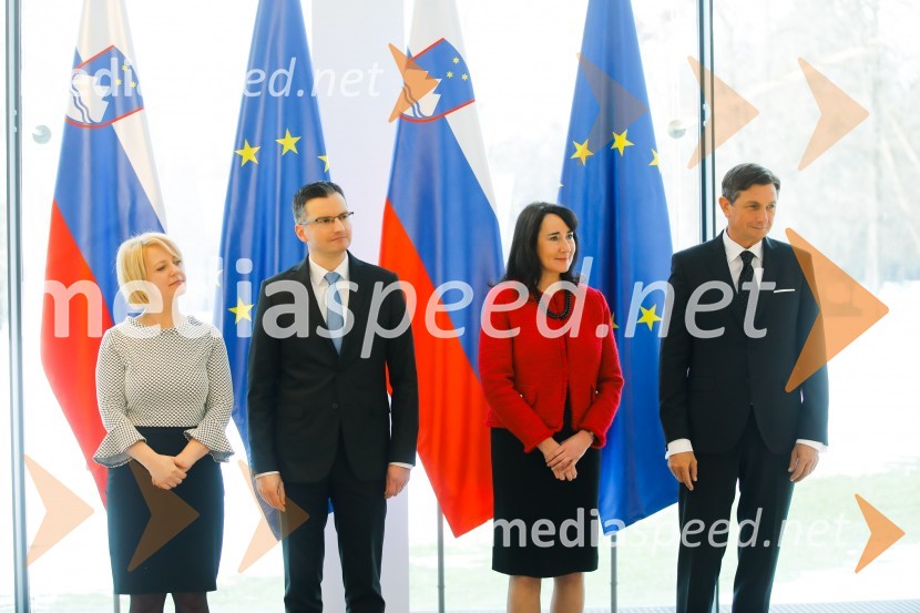 Barbara Iskra Šarec; Marjan Šarec, predsednik Vlade Republike Slovenije; Tanja Pečar, odvetnica; Borut Pahor, predsednik Republike Slovenije Pahor in Šarec gostila diplomatski zbor