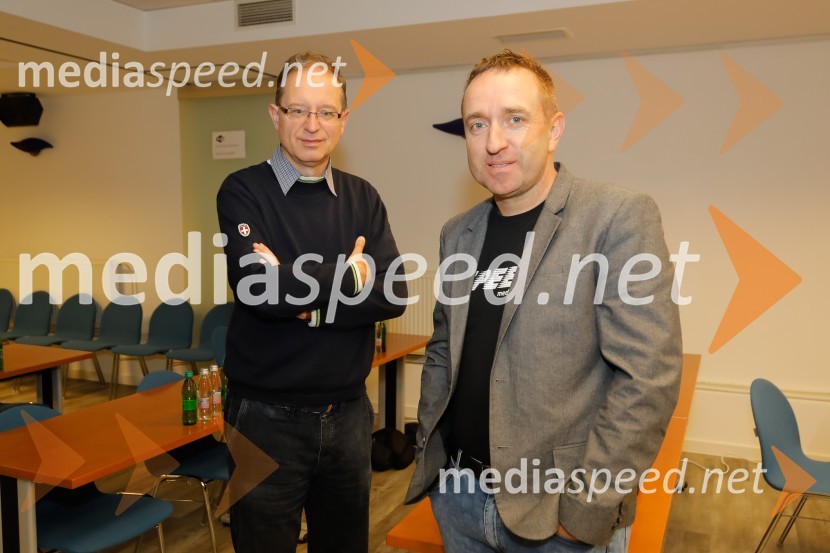 Robert Pogačar, novinar športni dnevnik Ekipa; Borut Cvetko, kreativni direktor, MediaspeedV Krškem dirka za veliko nagrado Slovenije v Speedwayu