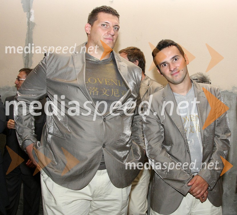 Miroslav Vodovnik, tekmovalec v metu krogle in Bojan Tokič, namiznoteniški igralecSprejem slovenske olimpijske reprezentance v Ljubljani