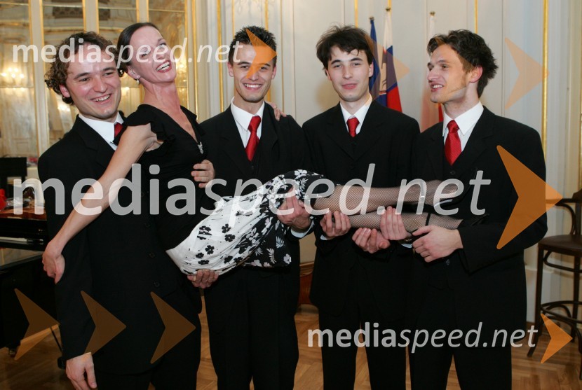 Godalni kvartet Feguš: Andrej, Jernej, Simon, Filip in balerina Tanja BaronikGlazerjeve nagrade, podelitev SNG Maribor
