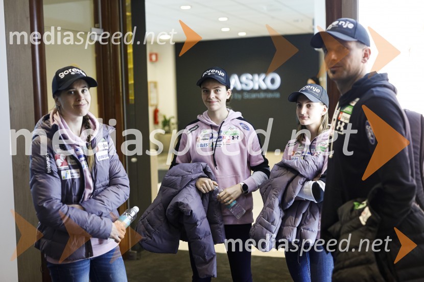 Urša Bogataj, smučarska skakalka; Jerneja Brecl, smučarska skakalka; Katra Komar, smučarska skakalka; Nejc Brodar, trener Predstavitev skakalcev in nordijcev za sezono 2020