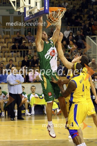 Vladimir Golubović, Union Olimpija (center) med zabijanjemKošarka: Olimpija - Maccabi Tel Aviv