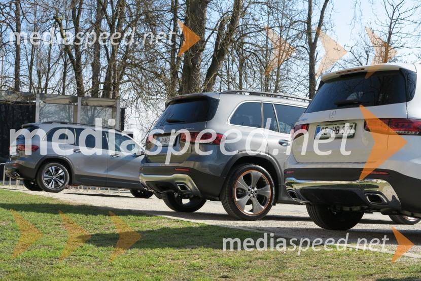 Vsako tretje pri Mercedesu na novo registrirano osebno vozilo v Sloveniji je predstavnik segmenta športnih terencev. Kupci se za nakup takšnih vozil odločajo predvsem zaradi višjega sedenja, boljše preglednosti, prostorne in funkcionalne potniške kabine, privlačnega dizajna in seveda poudarjenega občutka za varnost. Tipični kupci novega GLB, tako pri Mercedesu, so uspešni in poročeni moški v svojih 40. letih, z enim do dvema otrokoma, ter odgovorni in premišljeni pri vsem kar delajo v življenju. Zato je model GLB logično nadaljevanje Mercedesove strategije širitve modelske palete v segmentu kompaktnih SUV vozil. Na motorni maski lahko opazimo enojno oziroma dvojno lamelo, kar jasno nakazuje, da gre za predstavnika kompaktnih športnih terencev. Poleg serijskih žarometov, so opcisjko na voljo še visokozmogljivi žarometi LED in pa žarometi MultiBeam LED z avtomatskim senčenjem. S tem, da žarometi pri GLB aktivno ne sledijo ovinku, kakor to počnejo pri višje rangiranih Mercedesovih vozilih. Lahka platišča so velika od 17 do 20 palcev, pri različici AMG celo do 21 palcev. Novi GLB visokopotezno definira tudi prostornost. Sedenje je za kar šest centimetrov višje kot v razredu B. Druga sedežna klop je prav tako pomaknjena nekoliko višje in manjšim družinskim članov omogoča neoviran pogled iz avtomobila. Druga sedežna vrsta je pri sedemsedežni različici serijsko opremljena z 9 centimetrskim vzdolžnim pomikom, pri petsedežnih različicah je vzdolžni pomik potrebno doplačati. V tretji sedežni vrsti iz varnostnih razlogov lahko sedijo do 168 centimetrov visoke osebe, sedeža pa sta opremljena tudi z ISOFIX pritrdilnimi mesti. V GLB lahko namestite štiri ISOFIX otroške sedeže, in sicer dva v dugo in dva v tretjo sedežno vrsto. Prtljažnik pri petsedežni različici v osnovi meri 570 litrov, pri sedemsedežni različici je za tretjo sedežno vrsto na voljo 150 litrov prostora. Ob podrtju zadnjih dveh sedežev, dobimo 500 litrov volumna. Ob podrtju vseh sedežev, pa dobimo do 1.805 litrov uporabnega prostora. Multimedijski zaslon in pa kombi instrument serijsko merita 2x 7-palcev, opcijsko imata lahko diagonalo 2x 26 centimetrov oziroma 2x 10,25- palcev. Mercedesov multimedijski sistem MBUX pa je seveda del serijske opreme. Izredno bogata je ponudba asistenčnih sistemov, ki so enakovredni tistim v razredu ali dva večjih športnih terencev; aktivni asistent za ohranjanje razdalje DISTRONIC s samodejno prilagoditvijo hitrosti pred križišči in s funkcijo samodejnega prilagajanja hitrosti glede na prometne znake, aktivni krmilni asistent za zaviranje v sili s funkcijo koridorja za reševalna vozila ali zavorni asistent, ki prepozna pešce in kolesarje. Cena vstopnega modela GLB 180 z dizelskim motorjem znaša 36.950 evrov. Vse pogonske izvedenke so serijsko opremljene s samodejnim menjalnikom, opcijsko pa je na voljo tudi štirikolesni pogon 4 MATIC, za katerega je potrebno odšteti približno 2.300 evrov. Trenutno so na voljo trije bencinski in trije dizelski motorji, v sredini leta pa nameravajo lansirati še izvedenko GLB 180 z bencinskim motorjem. Namenjena bo tistim, ki si želijo voziti robustnega Mercedesovega športnega terenca, a za malce bolj ugodno ceno. Prihodnje leto (2021) pa bo model GLB na ceste zapeljal tudi kot povsem električno vozilo.