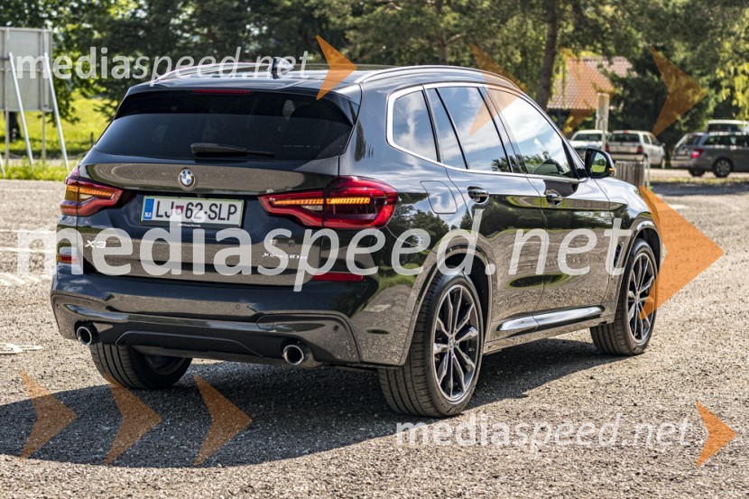S polno napolnjeno baterijo z zmogljivostjo 12 kilovatnih ur in učinkovitim sistemom rekuperacije zavorne energije smo ob kombiniranem pogonu prevozili s preudarno vožnjo izključno na elektriko več kot pol stokilometrske poti, povprečna poraba bencina pri tem pa je bila manj kot štiri litre. Tak priključnohibridni X3 se torej izkaže na srednje dolgih razdaljah ob prevladujoči vožnji na električni pogon, kratke razdalje do 30, celo 40 kilometrov pa je mogoče prevoziti tudi izključno na elektriko, torej povsem brez emisij, a moramo pri tem bolj nežno speljevati in zvezno pospeševati. Ko pa se enkrat navadimo samodejnega pojemka pri rekuperaciji, lahko zaviramo tudi brez uporabe stopalke zavore – samo z odmikom noge s stopalke za plin ali pa s pritiskom na gumb na volanu, če zaupamo asistenčnemu sistemu za delno avtomatizirano vožnjo. Oba motorja skupaj zmoreta 292 'konjev' sistemske moči. Pospešek od nič na sto kilometrov na uro je zagotovljen v šestih sekundah, največja hitrost na digitalnem merilniku pa je 210 kilometrov na uro. Samo električni način vožnje lahko izberemo ob zadostni napolnjenosti baterije s stikalom; pri tem načinu je hitrost omejena na 135 kilometrov na uro, vendar bo zaloga energije v bateriji kaj hitro pošla. Sami smo se raje predali uglajeni sproščeni vožnji tako, da smo izbiro in preklapljanje med pogonoma prepustili kar vozilu. A da ne bo kakšne pomote – ni samo elektrika tisto, kar daje užitek vožnji s tretjo generacijo modela X3. Ta BMW postaja vse bolj statusni simbol za ljudi, ki si ga lahko privoščijo, zaradi svoje vrhunske vsebine in izvrstnih pogonskih tehnologij.
