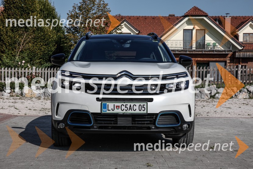 Novi Citroen C5 Aircross Hybrid nudi vožnjo z ničnimi emisijami CO2 in v 100 % električnem načinu dosega 50 km, na daljših poteh pa mu pomaga bencinski motor Pure Tech (Euro 6) s 180 konjskimi močmi, ki pa porabijo le 1,7 litra goriva na 100 km. Novi model prav tako ponuja neslišno vožnjo (Silent Urban Vehicle) in veliko stopnjo udobja po zaslugi zvočno izoliranih, večplastnih sprednjih stekel, odličnega vzmetenja in elektrificiranega samodejnega menjalnika e-EAT8. Bencinski in električni motor skupaj premoreta 225 konjskih moči. Prostornina prtljažnika pa je v razponu od 460 do 600 litrov. Ponaša se z drznim značajem, ki ga predstavlja eloksirana modra barva (Anodised Blue), ki simbolizira priključni hibridni pogon. Število vseh možnih barvnih kombinacij pa je 39. Notranjost je opremljena s samozatemnitvenim vztratnim ogledalom, z indikatorjem vožnje v 100% električnem načinu, pod ogledalom pa se nahaja modra lučka, ki ponazarja, da gre za vozilo, ki vozi v načinu z ničnimi emisijami (ZEV). Udobje nudi oblazinjenje s 15 - milimetrsko peno v kombinaciji s penasto gumo visoke gostote. Med 20-imi tehnologijami za pomoč pri vožnji velja izpostaviti Hightway Driver assist, sistem namenjen vožnji v prometnih zastojih ter na avtocestah in hitrih cestah, ki omogoča vozniku, da delno preda nadzor nad vožnjo svojemu vozilu. Čas polnjenja je odvisen od priključka. Na klasičnem gospodinjskem priključku se vozilo polni čez noč, Ob nakupu ali najemu priključka Wallbox 32 A pa se akumolator napolni v manj kot 2 urah. Od Citroenovega SUV C5 Aircross Hybrid-a naprej bodo vsi modeli Citoren na voljo s ponudbo na električni pogon, kot znak Citroenove predanosti do odgovornega energetskega prehoda.