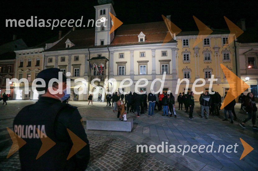 "Po pozivanju na družbenih omrežjih, se je včeraj ob 21. uri, na t.i. »protestu proti policijski uri« na Glavnem trgu v Mariboru, zbralo okoli 50 ljudi, dogajanje pa je spremljalo tudi okoli 20 novinarjev. Osebe, ki so se tam zbrale (z izjemo novinarjev), so se zavedale, da s svojo prisotnostjo na javnem kraju, kršijo veljaven Odlok o začasni delni omejitvi gibanja ljudi in omejitvi oziroma prepovedi zbiranja ljudi zaradi preprečevanja okužb s SARS-CoV-2, v delu, ko ta omejuje gibanje ljudi med 21. in 6. uro, saj so čas prihoda in zbiranja na tem mestu, prilagodili prav tej omejitvi. Policija se sicer zaveda pomena javnega izražanja mnenj in stališč o vprašanjih javnega ali skupnega pomena. Na udeležence protesta smo zato skupaj s pristojnimi inšpektorji zdravstvenega inšpektorata apelirali, naj spoštujejo navedeni predpis, zdravstveni inšpektorji pa so navzočim izrekali opozorila za storjene prekrške. Zdravstveni inšpektorat je namreč izvirno pristojen za obravnavo prekrškov, povezanih z izvajanjem navedenega odloka. Policisti smo jim nudili zgolj pomoč in sami nismo izrekli nobene sankcije. Večina udeležencev je opozorila inšpektorjev takoj upoštevala in so, v manjših skupinah, zapustili Glavni trg in odšli domov. Ostala je skupina oseb, ki so jim inšpektorji ob 21.25 ponovno izrekli opozorilo, ki so ga upoštevali in se razšli. Okoli 21.30 ure je bil Glavni trg prazen, na njem so ostale samo osebe, ki so opredeljene kot »izjeme« v odloku in jim je gibanje v času »policijske ure« dovoljeno. Ker so udeleženci upoštevali opozorila in so se razšli, policistom ni bilo potrebno ukrepati zoper nikogar in svojih pooblastil zato, ob upoštevanju načela sorazmernosti, niso uporabili.
