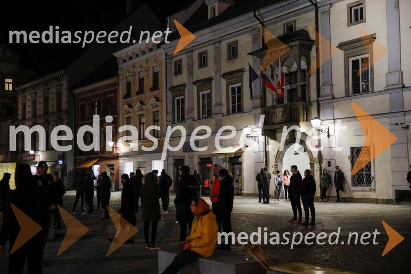 "Po pozivanju na družbenih omrežjih, se je včeraj ob 21. uri, na t.i. »protestu proti policijski uri« na Glavnem trgu v Mariboru, zbralo okoli 50 ljudi, dogajanje pa je spremljalo tudi okoli 20 novinarjev. Osebe, ki so se tam zbrale (z izjemo novinarjev), so se zavedale, da s svojo prisotnostjo na javnem kraju, kršijo veljaven Odlok o začasni delni omejitvi gibanja ljudi in omejitvi oziroma prepovedi zbiranja ljudi zaradi preprečevanja okužb s SARS-CoV-2, v delu, ko ta omejuje gibanje ljudi med 21. in 6. uro, saj so čas prihoda in zbiranja na tem mestu, prilagodili prav tej omejitvi. Policija se sicer zaveda pomena javnega izražanja mnenj in stališč o vprašanjih javnega ali skupnega pomena. Na udeležence protesta smo zato skupaj s pristojnimi inšpektorji zdravstvenega inšpektorata apelirali, naj spoštujejo navedeni predpis, zdravstveni inšpektorji pa so navzočim izrekali opozorila za storjene prekrške. Zdravstveni inšpektorat je namreč izvirno pristojen za obravnavo prekrškov, povezanih z izvajanjem navedenega odloka. Policisti smo jim nudili zgolj pomoč in sami nismo izrekli nobene sankcije. Večina udeležencev je opozorila inšpektorjev takoj upoštevala in so, v manjših skupinah, zapustili Glavni trg in odšli domov. Ostala je skupina oseb, ki so jim inšpektorji ob 21.25 ponovno izrekli opozorilo, ki so ga upoštevali in se razšli. Okoli 21.30 ure je bil Glavni trg prazen, na njem so ostale samo osebe, ki so opredeljene kot »izjeme« v odloku in jim je gibanje v času »policijske ure« dovoljeno. Ker so udeleženci upoštevali opozorila in so se razšli, policistom ni bilo potrebno ukrepati zoper nikogar in svojih pooblastil zato, ob upoštevanju načela sorazmernosti, niso uporabili.