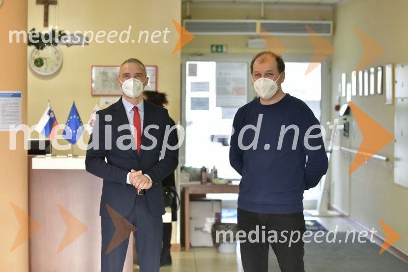 Janez Cigler Kralj, minister za delo, družino, socialne zadeve in enake možnosti; Zlatko Gričnik, direktor, Dom sv. Lenarta, Lenart V Sloveniji pričetek cepljenja proti novemu korona virusu Covid19