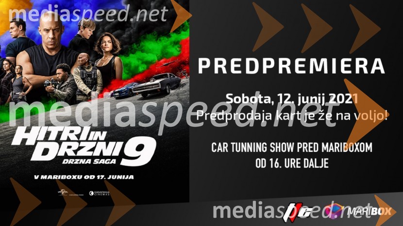 Po več kot sedmih mesecih nedelovanja vas kinocenter Maribox vabi na prvo, težko pričakovano, premiero. Ljubitelji Hitrih in drznih si boste že v petek, 11. junija 2021, predpremierno ogledali 9. nadaljevanje ‘najhitrejše’ franšize na svetu. Premiero akcijskega kriminalnega trilerja Hitri in drzni 9, ki bo v soboto, 12. junija 2021, ob 19.00, pa bo pospremil poseben Car Tunning Show pred teraso Mariboxa ob Dravi. Več na: https://maribox.si/ Vabljeni v Maribox!