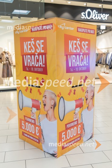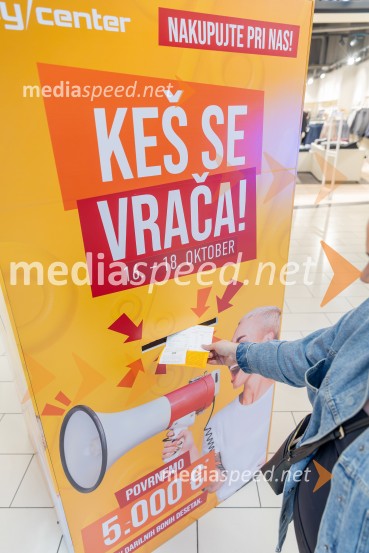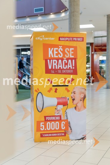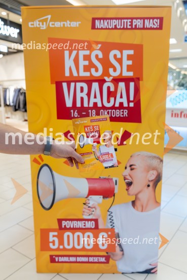 V Citycentru Celje ta konec tedna poteka priljubljeni nakupovalni dogodek »Keš se vrača«, ki je že prvi dan privabil številne obiskovalce. Od 16. do 18. oktobra namreč lahko kupci sodelujejo v veliki nagradni igri, v kateri bo srečnim nagrajencem povrnjenih kar 5.000 € v Desetakih.